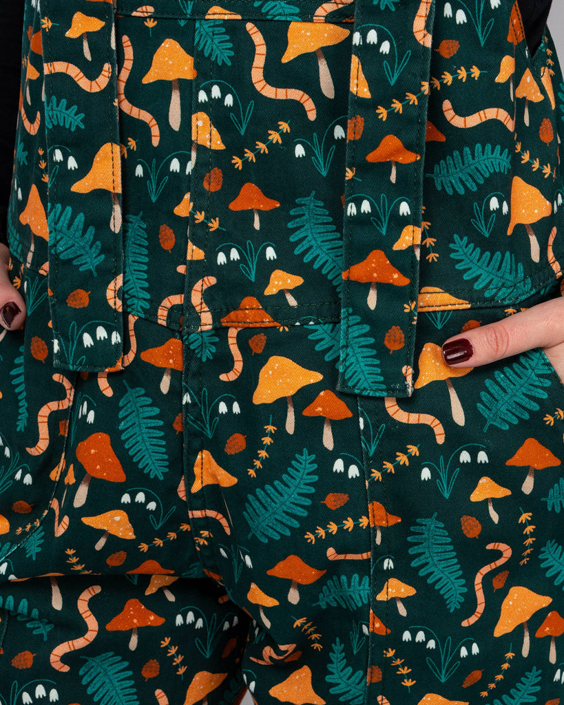 Ethically made in India using fair labour practices 🧵 Crafted from comfortable and durable stretch twill 🍄🟫 Relaxed unisex fit with a tapered leg, perfect for rolling up 🪱 Handy pockets galore: one front bib pocket, two side pockets, and two at the back 🌿 Stunning Earthy Eden print by Clare Lewis 🌈 Sizing from 5XS to 6XL ✨ Dyed using vegan, Oeko-Tex approved dyes 🌍 Perfect for alternative fashion lovers who care about sustainability and style ✨ Wholesale Terms 🌸